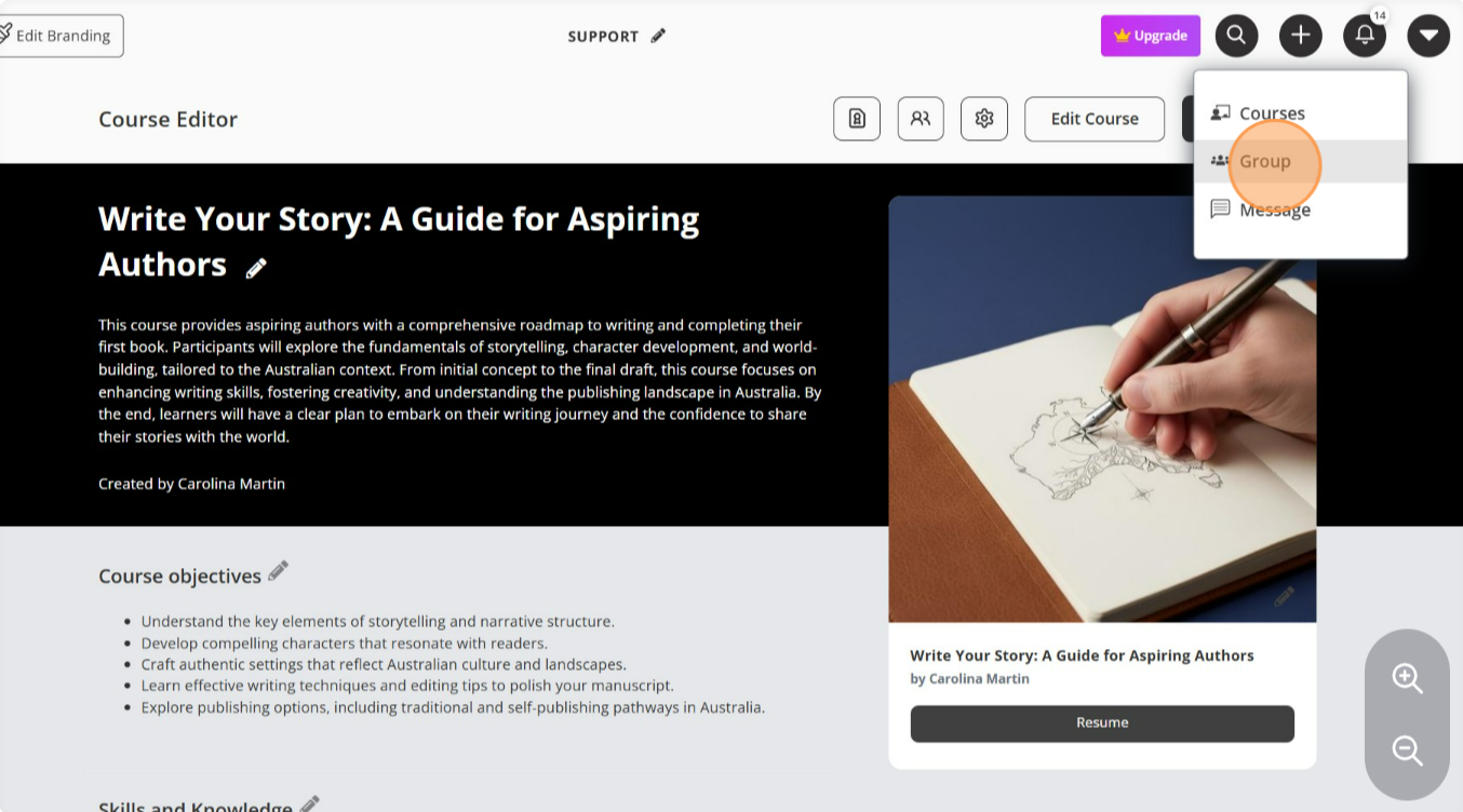 Once your Group is created, Coursebox gives you a range of tools to manage conversations, share resources, and keep members engaged.