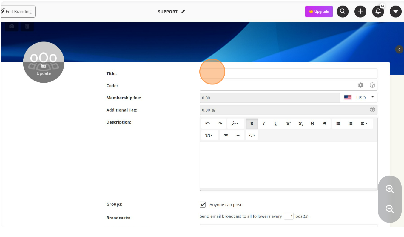 Edit the group title, description, or profile image by clicking the pencil/edit icons.
