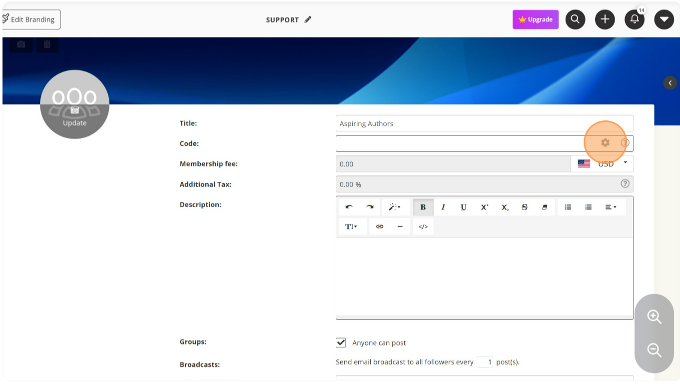Click on the pen icon on the top right corner of your Group to edit the description on the right hand side bar.