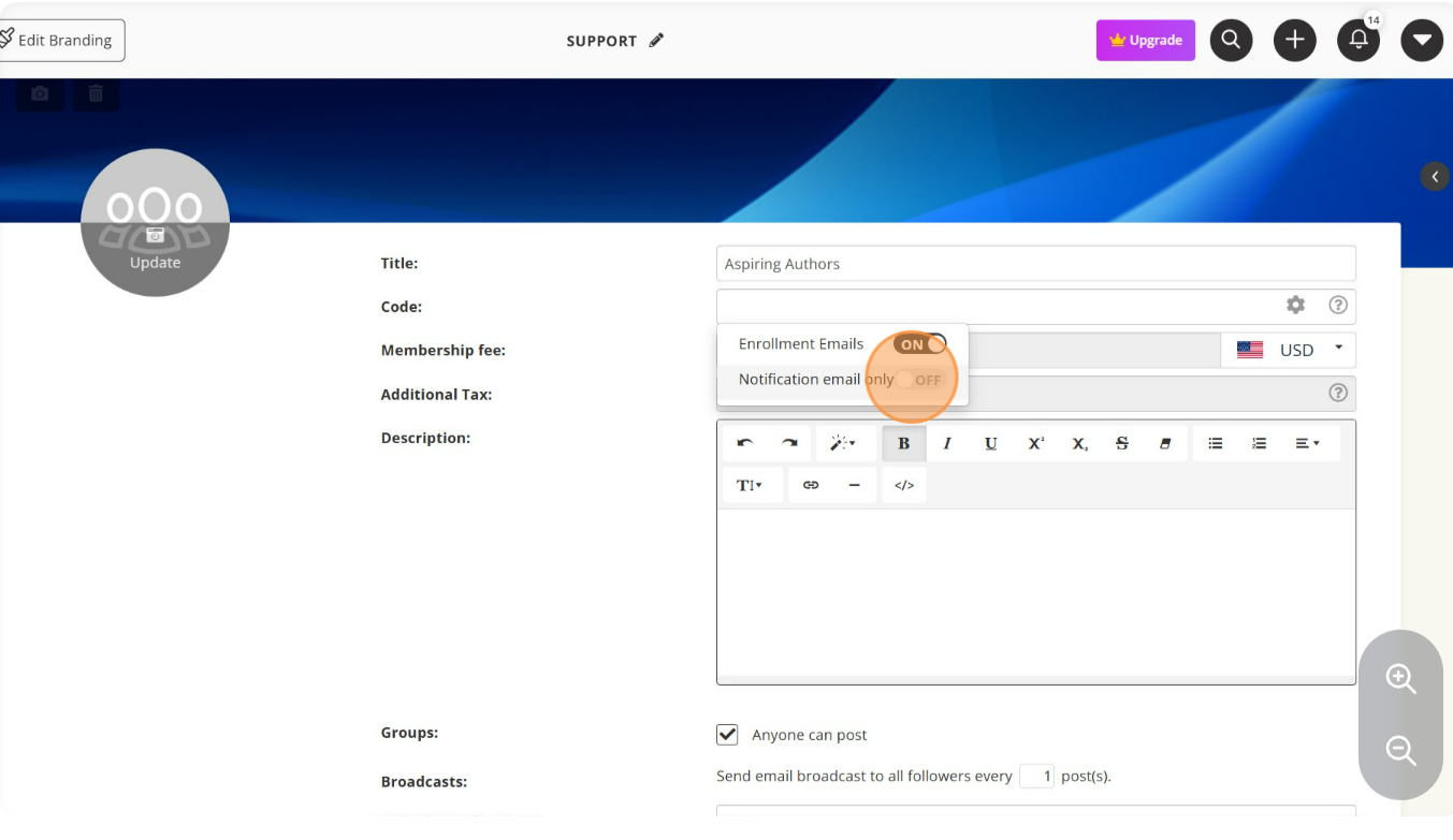 Navigate to Groups in the left-hand menu. Click on the Group name (for example, Aspiring Authors).