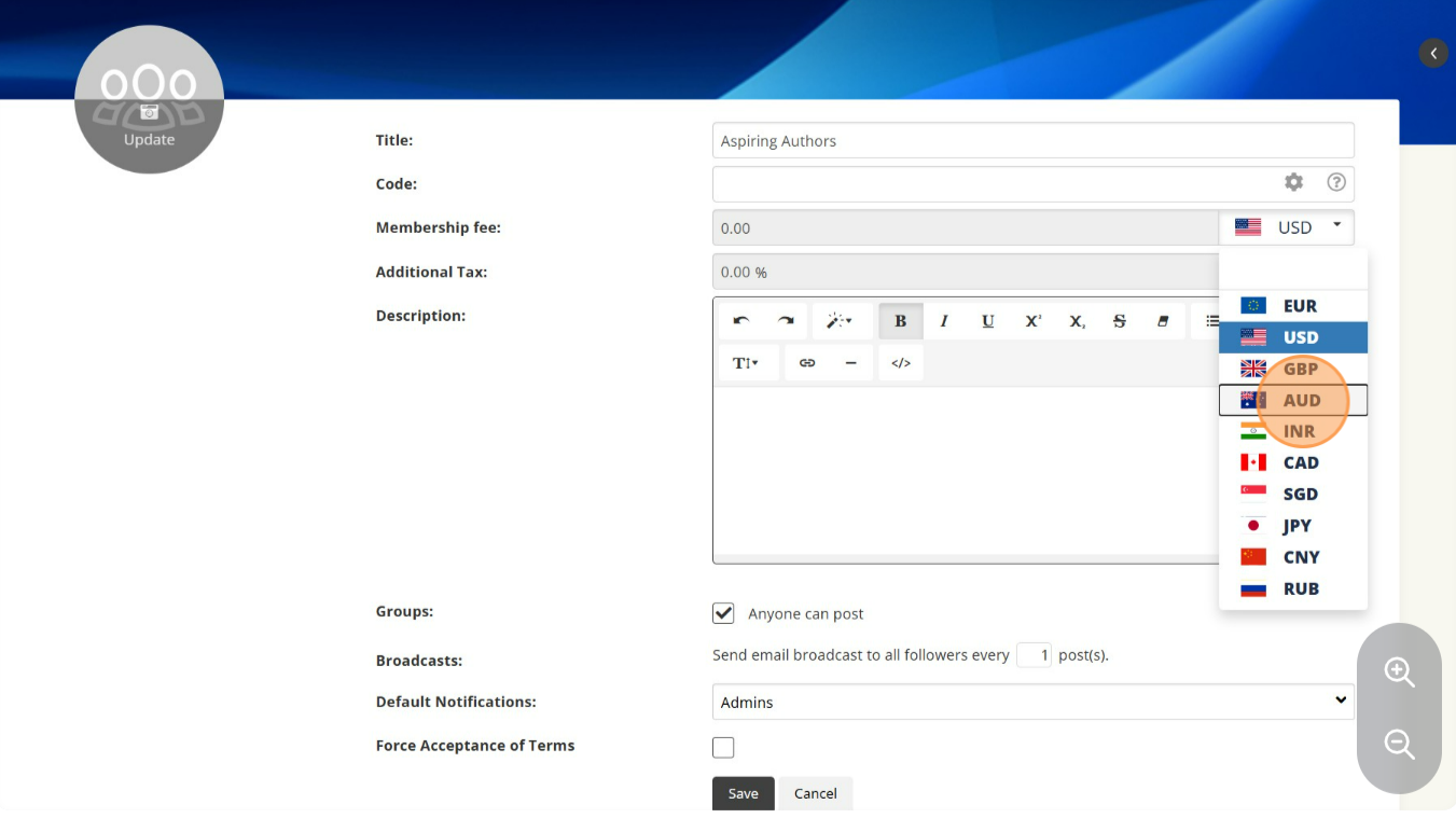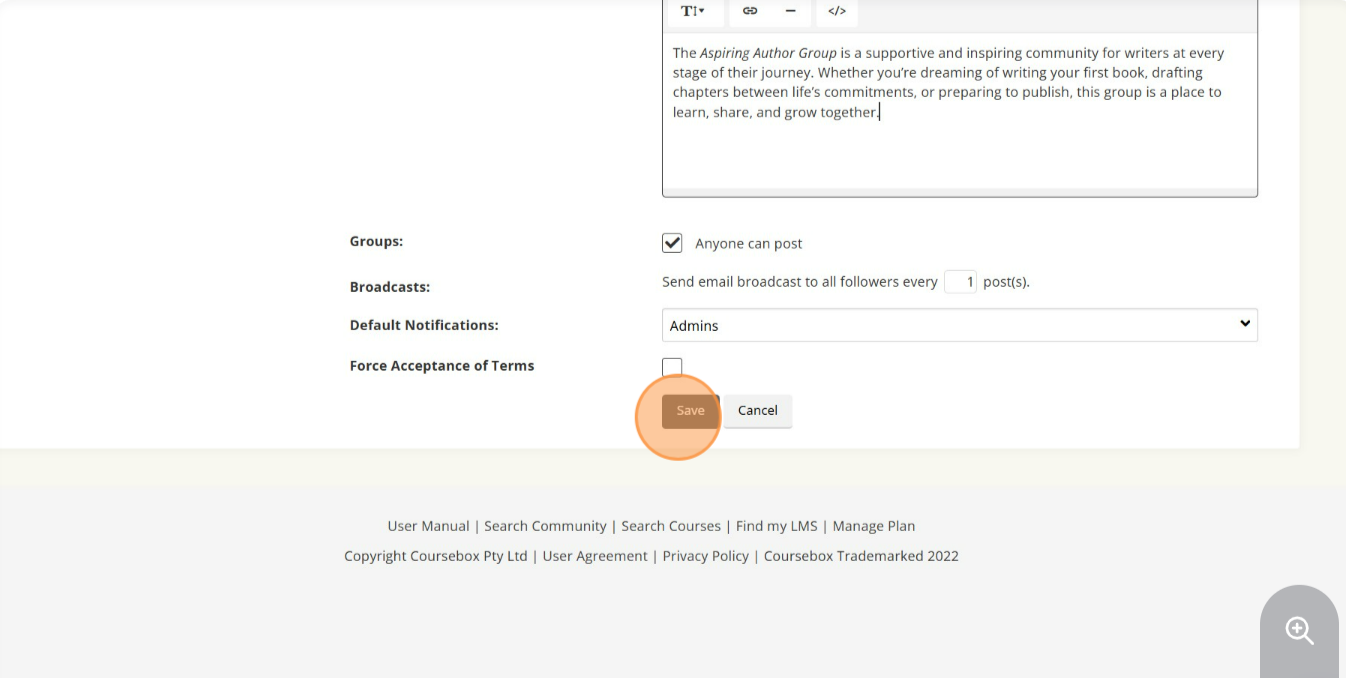 Groups: Tick "Anyone can post" if you want members to contribute to discussions.