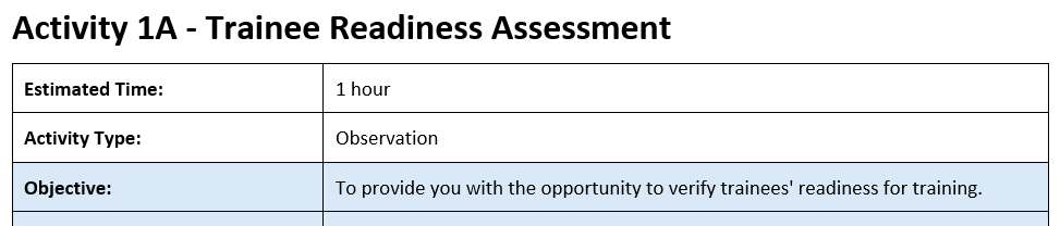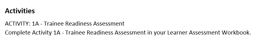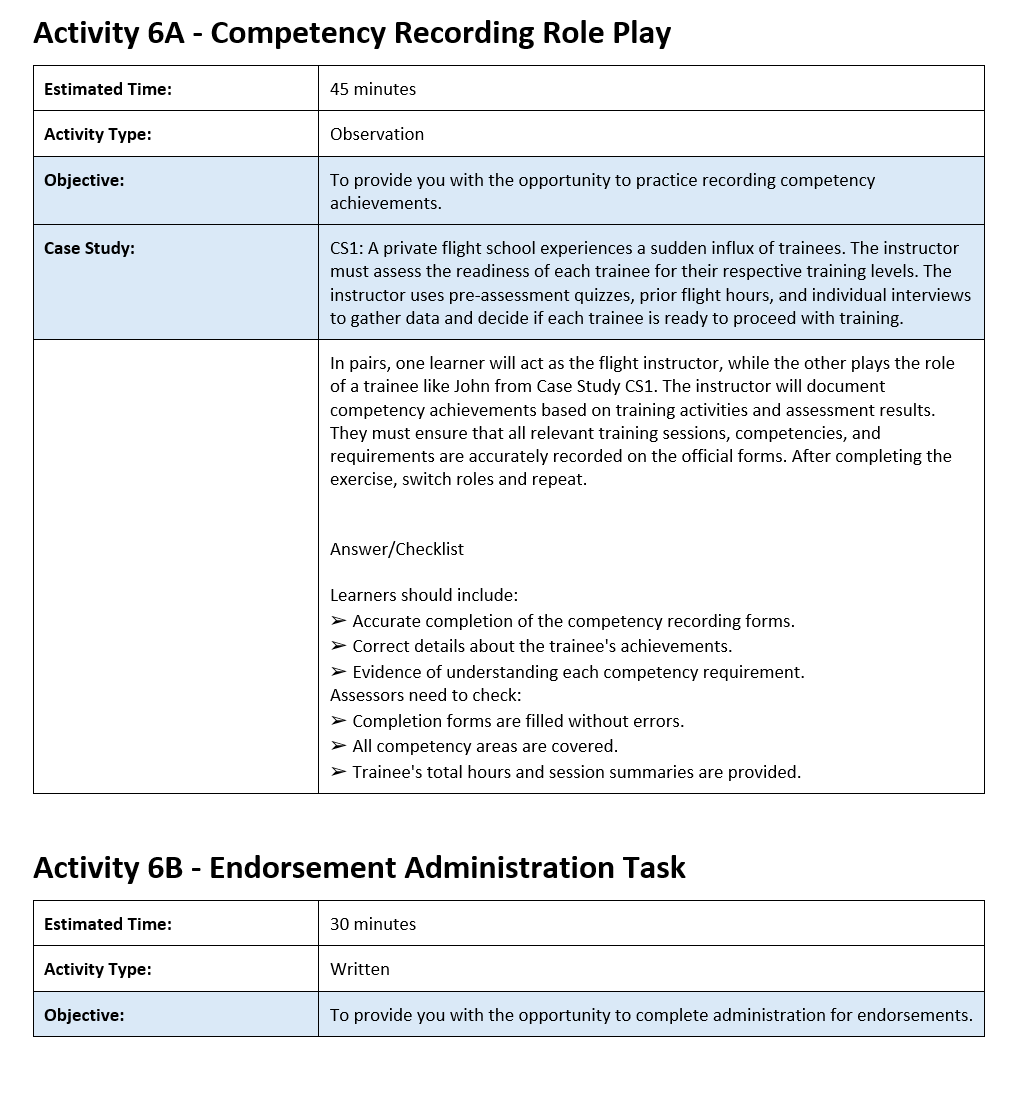 Look for alignment with the Learner Guide (e.g., activity numbers or case studies)