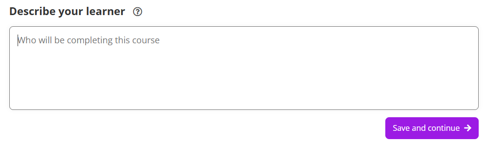 Then client the 'audience' button. Provide a description of your learner cohort. Consider their background, experience level, and learning needs. You can also refer to the Target Group or relevant sections of the Unit of Competency to help shape your description. Once complete, click Next to continue.