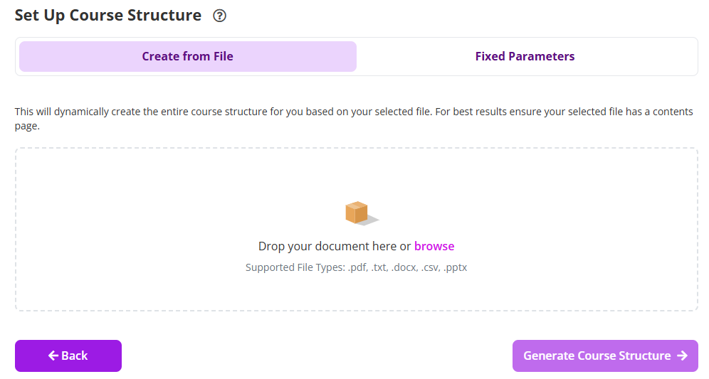 When you're ready, you can either click ‘generate’ on the course creation page or "generate course structure" from the create from file page.