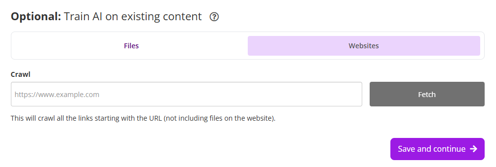 In order to create the course based on the government course curriculum URL, first select the 'upload' button in the main screen. Then select the Websites tab. Paste the URL into the designated area and then click 'fetch'. You can then save and continue.