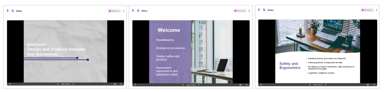 - Your selected presentation will be displayed as a slide gallery, and learners can use the left and right navigation icons to browse through the collection. This is a great way to showcase visual content in an engaging format.