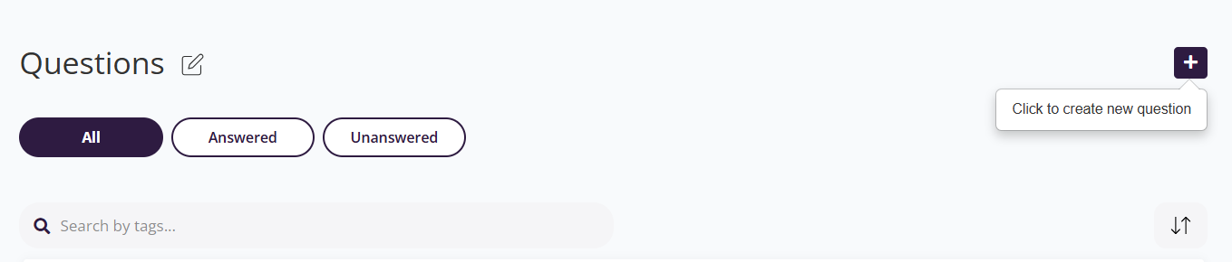 Click on the + button or ‘+ ask’ menu item from the left-hand side navigation bar inorder to create a new question.