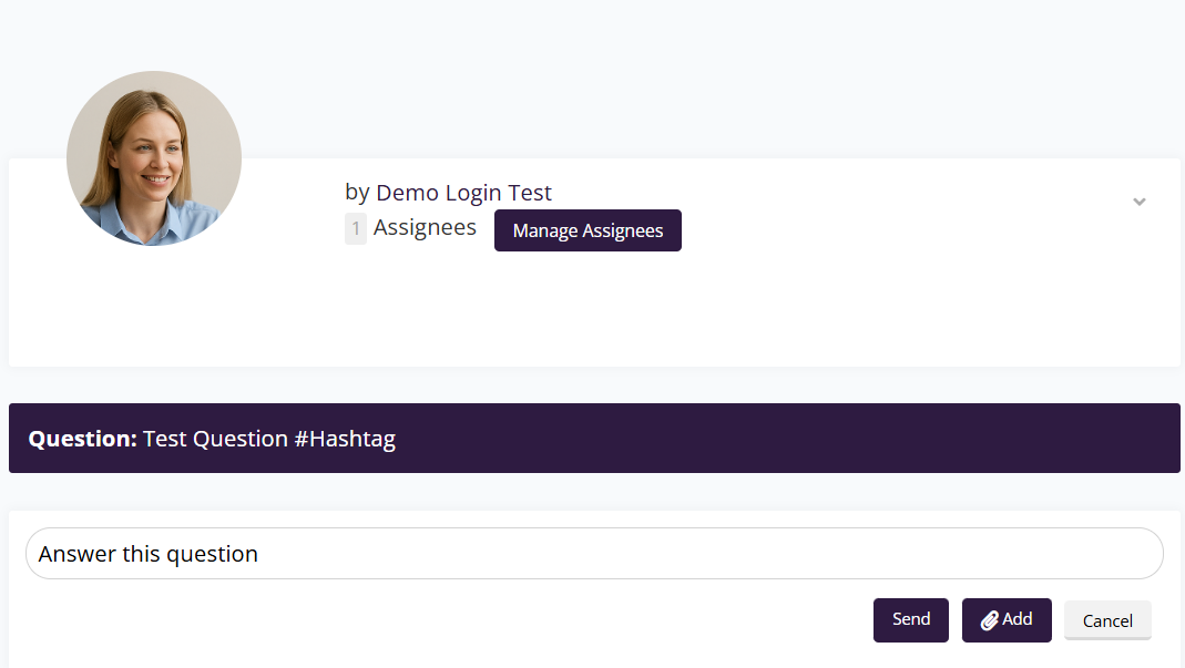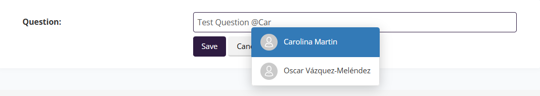 In addition to topics, you can also tag a user to a question. This is a great way to ask questions to experts or other team members.