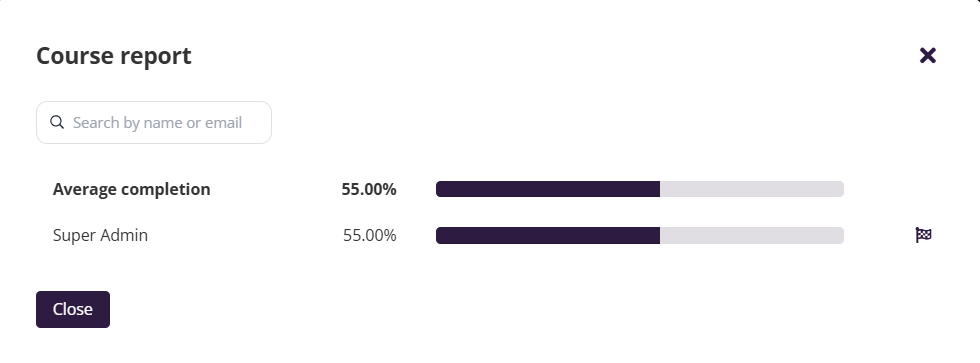 The dashboard provides valuable insights into how learners interact with your courses, including completion rates, time spent, assessment results, and more. These analytics help support informed decisions about course improvements, learner support, and training outcomes.