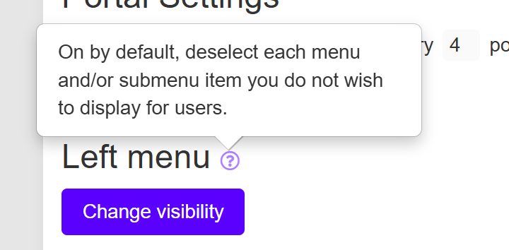 In the Left menu section, click Change visibility.
