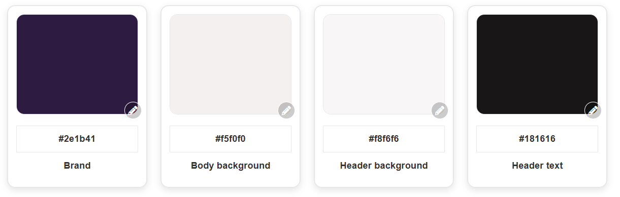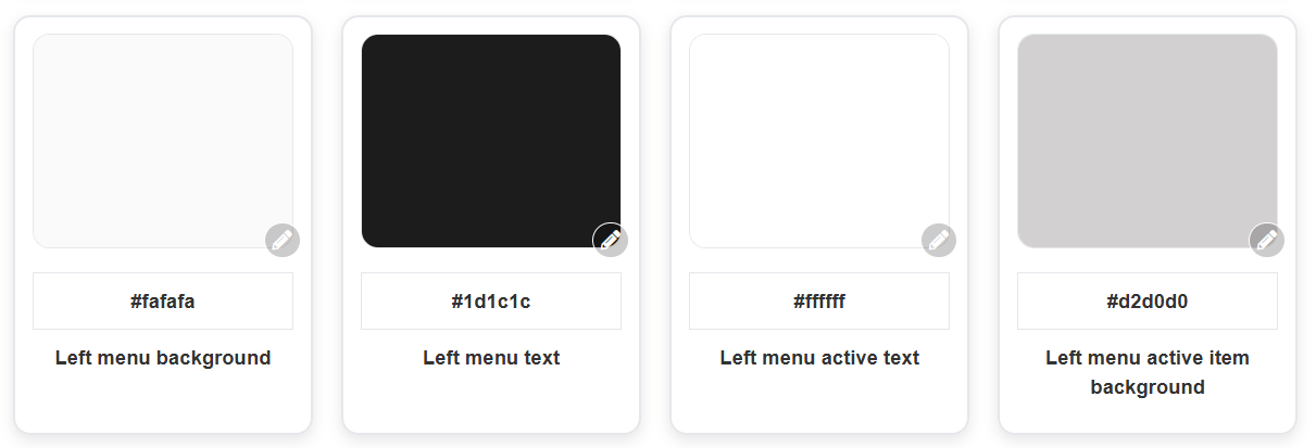 - For ach of the options, choose a colour or enter a HEX code, and save your changes.