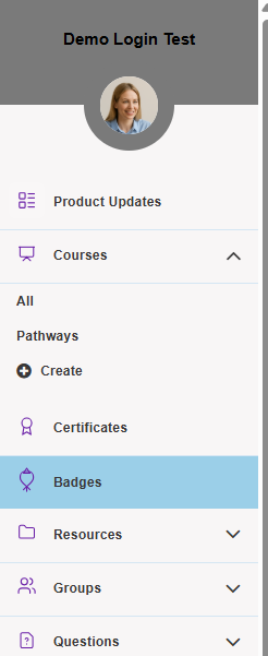 - From the left-hand menu, click Badges.
