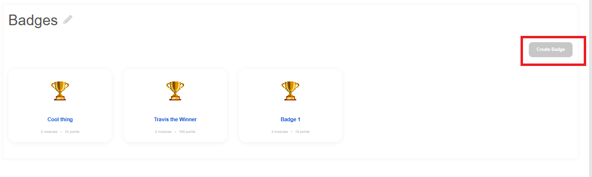 - To create a new one, click Create Badge in the top-right corner.