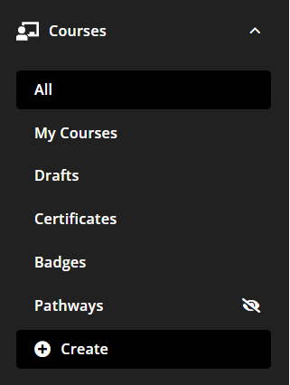 - Click 'courses' on the left hand side navigation bar and then the 'create' button