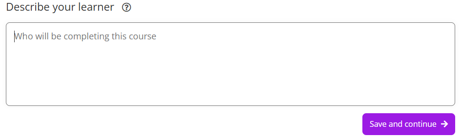 - Describe the Audience: This is where you would describe your learner. Be as detailed as you can so that the content is tailored to your specific learner. How experienced are they likely to be? Would you estimate a certain age bracket? These are the kinds of details that are useful to include
