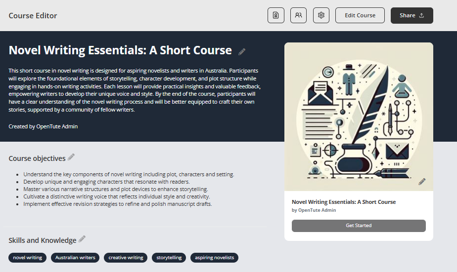 Once your course has been created—whether manually or with AI—you can begin customising it to suit your learning objectives. Coursebox provides an intuitive editing interface that lets you add, update, and organise your course content with ease.