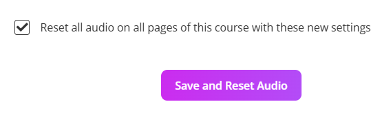 The Reset All Audio feature lets you regenerate every AI-generated audio clip in your course using your latest settings.