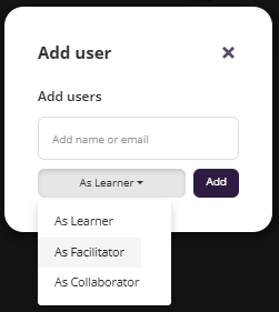 Adding a facilitator gives that person access to the course so they can support delivery, assist learners, and contribute to course management. This is also where you would grant access to members of the Coursebox Branded Training Platform (Premium) team if they are supporting your course setup or delivery.