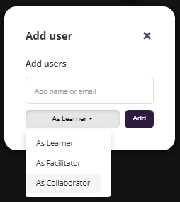 Note: The person must already have a user profile in your platform before they can be added as a collaborator.