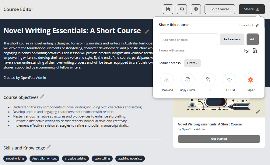 Once your course is ready, Coursebox makes it easy to share it with others in a way that suits your needs—whether you're providing access via a direct link, embedding it on a website, or assigning specific roles to learners and facilitators.