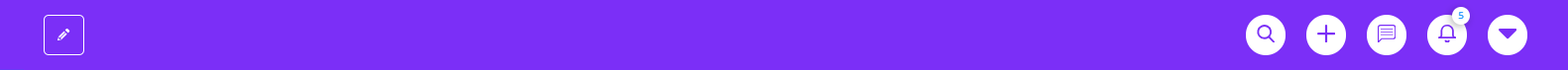 Where it appears: The full top bar across the platform (logo area, edit button, search/add/chat/notifications, profile).