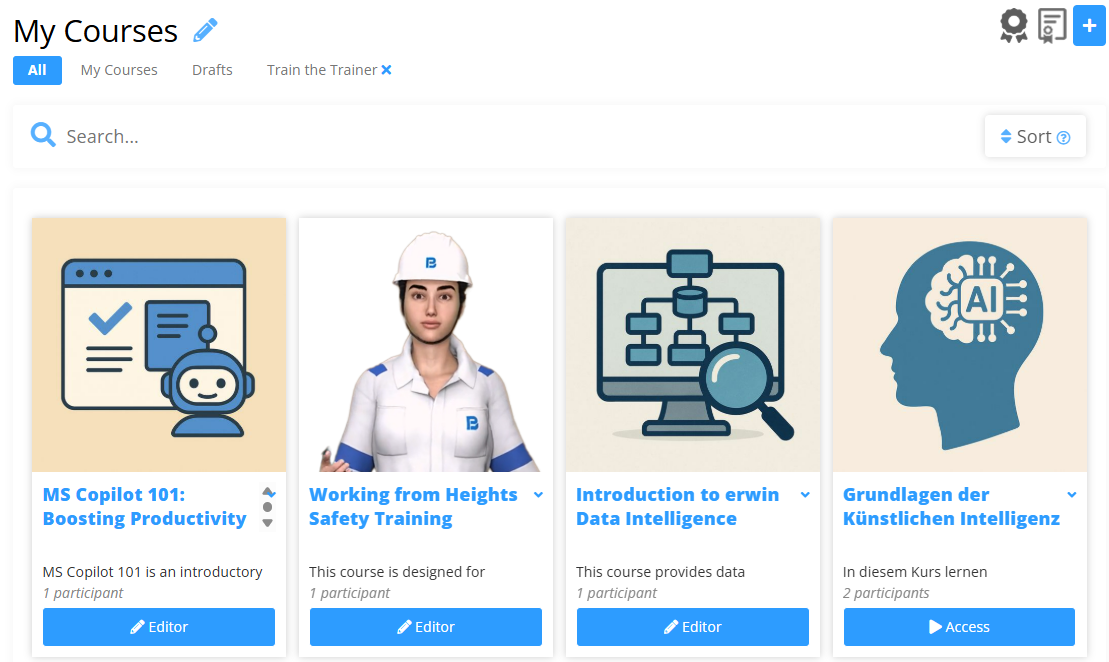 Where it appears: Icons in the Course Editor band (tools, settings, actions).