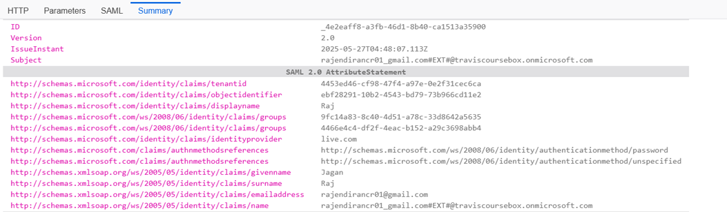 - Sample SAML Token containing all the claims of the user that will be generated by IDP