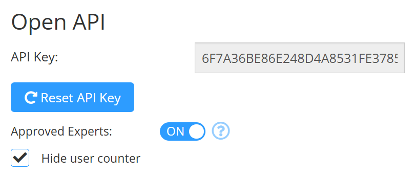 If needed, click Reset API Key to generate a new one.