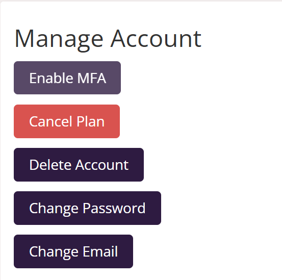 On the Manage Account screen, you’ll see several account options.
