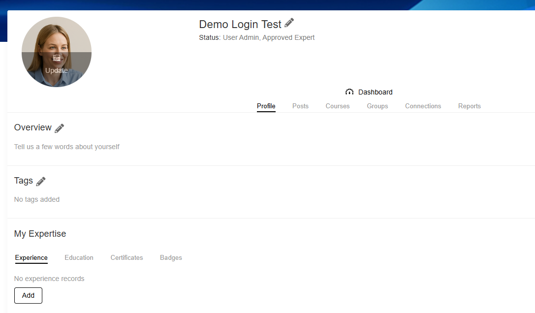 All members of Coursebox Branded Training Platform (Premium) will have their own profile page which they can edit.