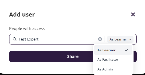Adding a facilitator gives that person access to the course so they can support delivery, assist learners, and contribute to course management. This is also where you would grant access to members of the Coursebox Branded Training Platform (Premium) team if they are supporting your course setup or delivery.