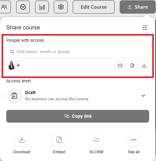 From the Course Editor, click the People icon located in the top-right corner of the page.