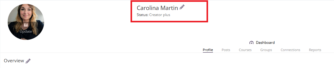 Click the pencil icon next to the name or profile fields to edit.
