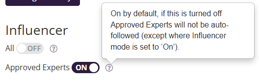 Toggle on/off Approved Experts as an ‘Influencer’,