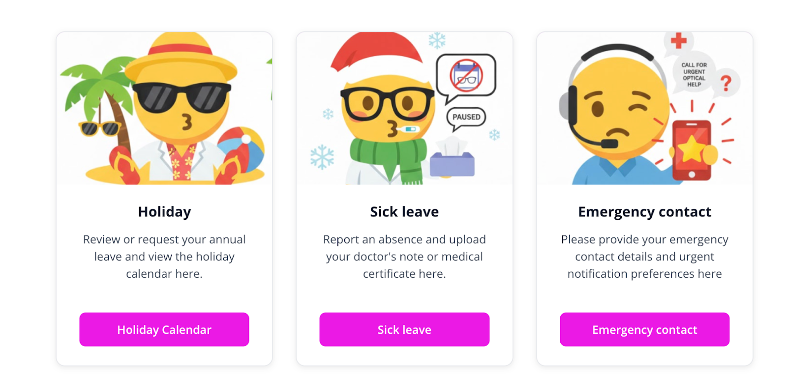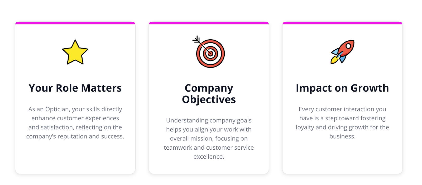 Highlight important content using visual cards with images, text, and optional call-to-action buttons.