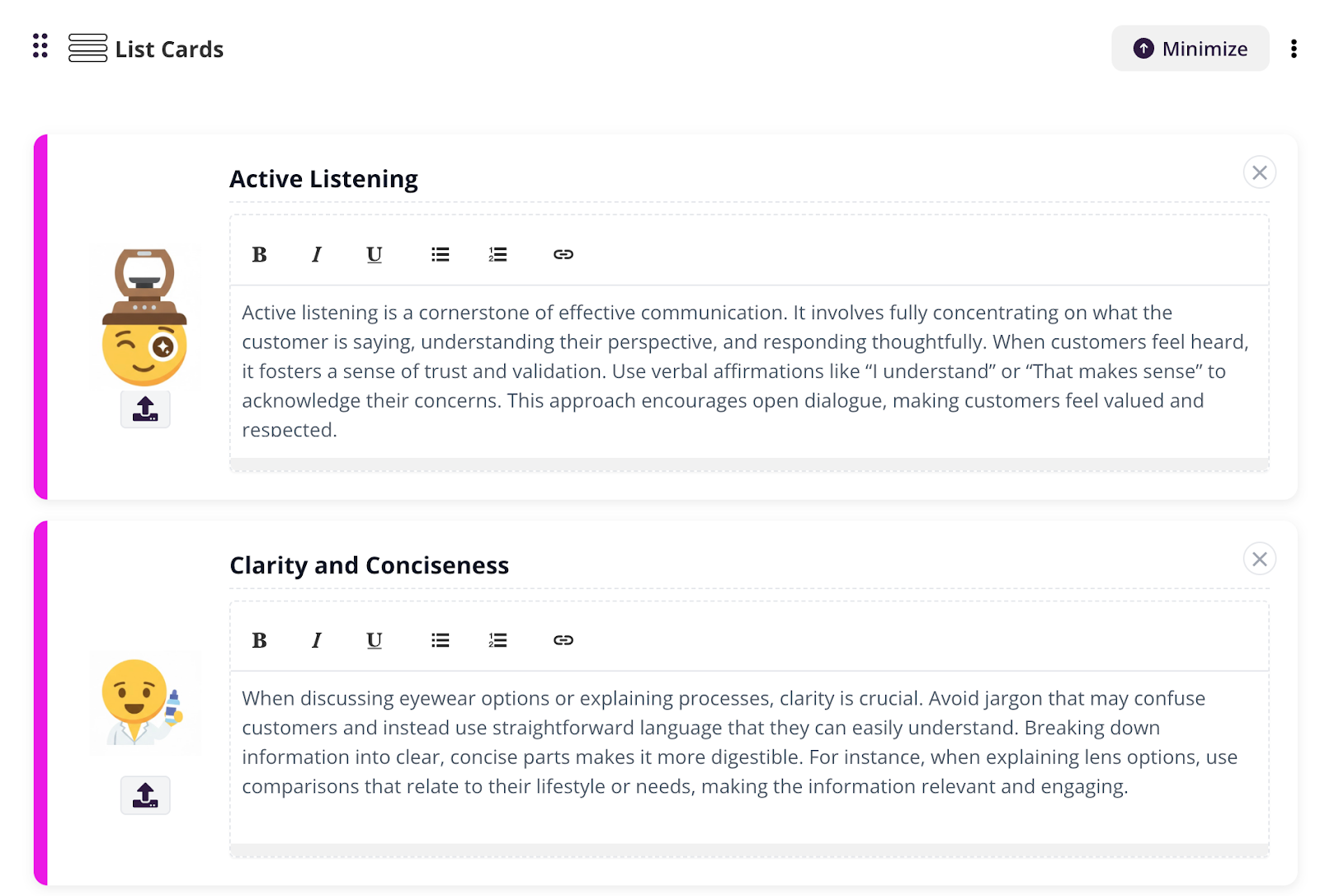 • Image — upload a visual for the card