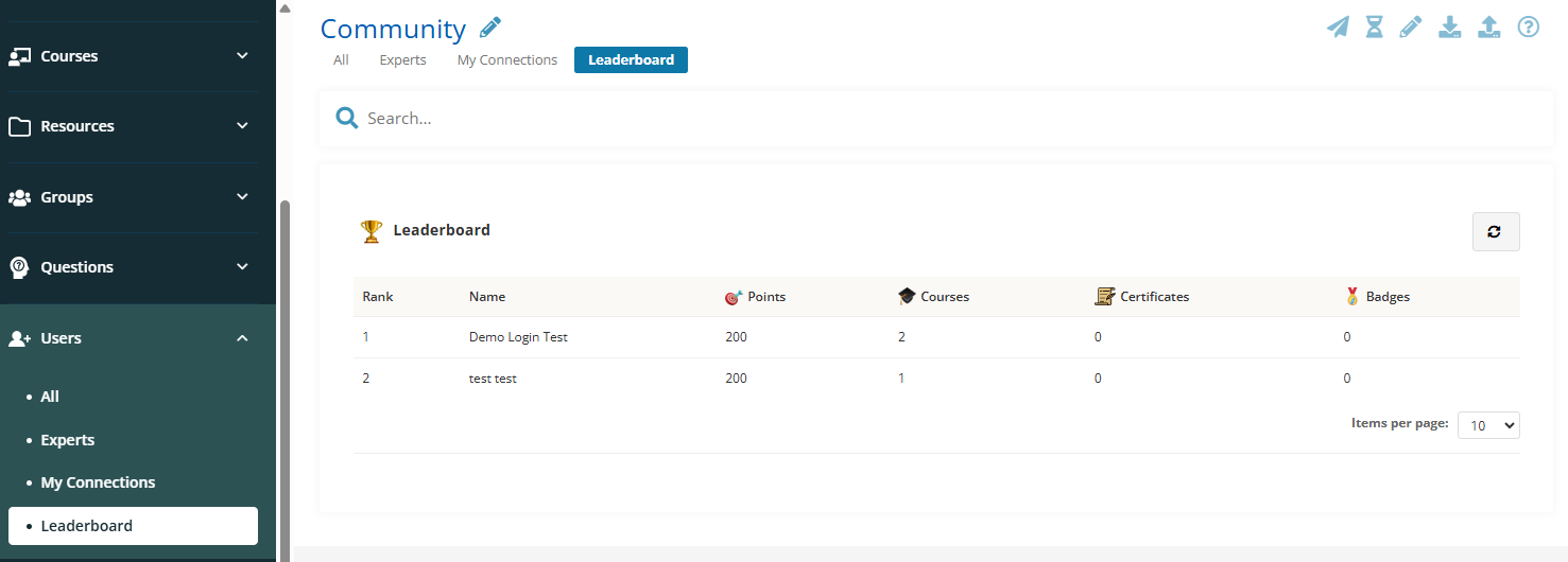 • Learners rank based on completed activities/points