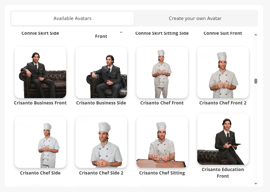Choose from 500+ AI avatars for your training videos.