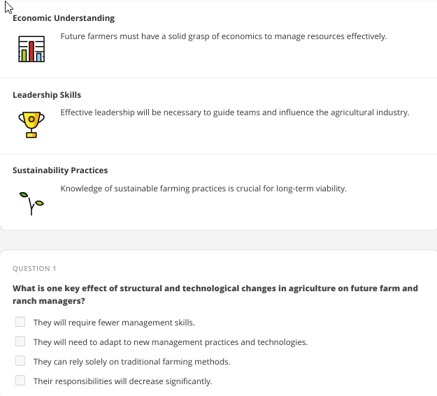 • Learners can ask questions and receive contextual answers