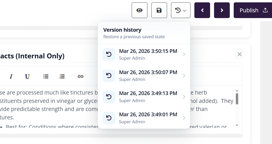 • Restore any previous version instantly